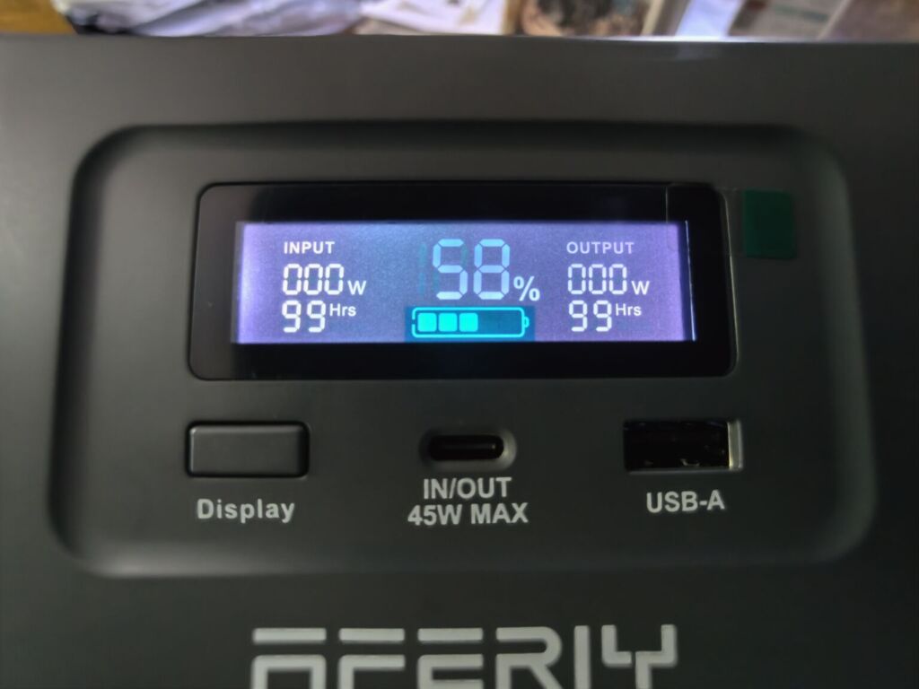 A la part frontal trobem una pantalla LCD molt còmoda, un botó per encendre/apagar la pantalla, una porta USB tipus C també amb doble funció d'entrada/sortida però en aquest cas amb un màxim de 45W i una porta USB tipus A només sortida 18W